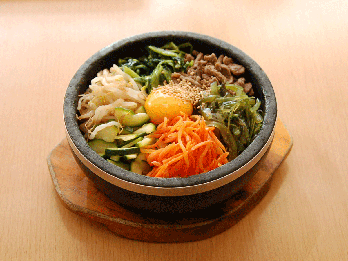 Servit dans bol normale ou en pierre chaude, c’est un mélange de riz, de viande de bœuf (ou au choix), de légumes sautés ou blanchis, assaisonnés, et d'un œuf, le tout relevé par de la pâte de piment coréenne fermentée (gochujang), servi séparément afin mettre que la quantité désirée.